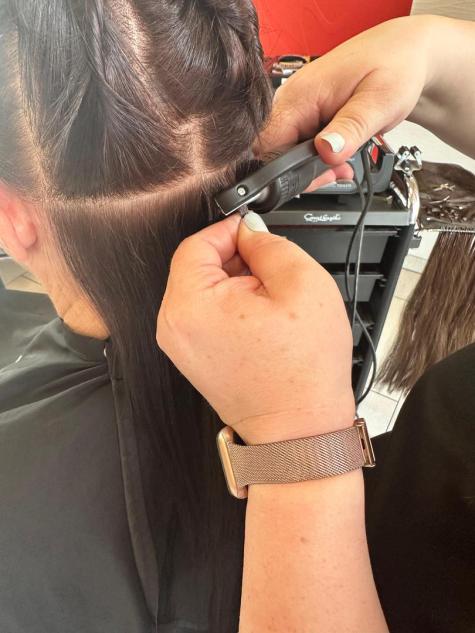 Franziska hat sich auf Haarverlängerungen/Verdichtungen der Firma Greats Length spezialisiert. Sie benutzt dabei, die Ultraschallmethode, in der feine flache Strähnen um das eigene Haar verbunden werden. Zusätzlich hat Sie in einen weiteren Seminar das Einsetzen von Hair-Tapes erlernt.